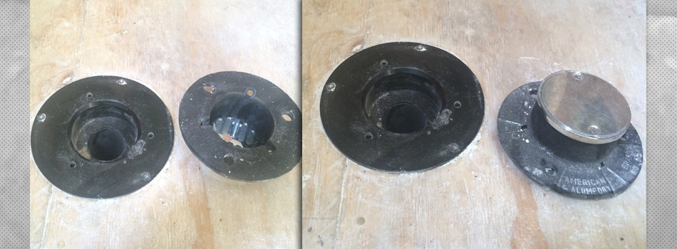 • Use a new two or three piece bolt-together drain with the outter edges of the subdrain flange installed flush or resting on top of slab/subfloor.
